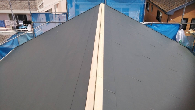 カラーベストの施工が完了したら、最後に棟板金を取り付けます。