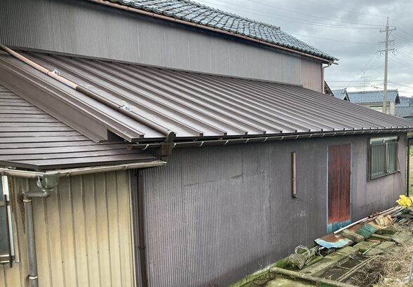 福井市にて、屋根の葺き替え、重ね葺き、雨樋工事を致しました。屋根は瓦棒葺きとAT…