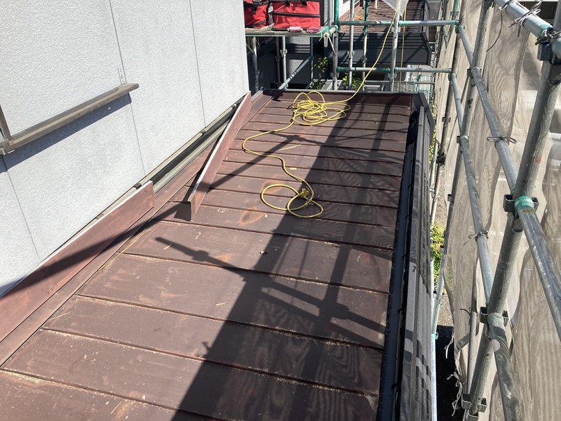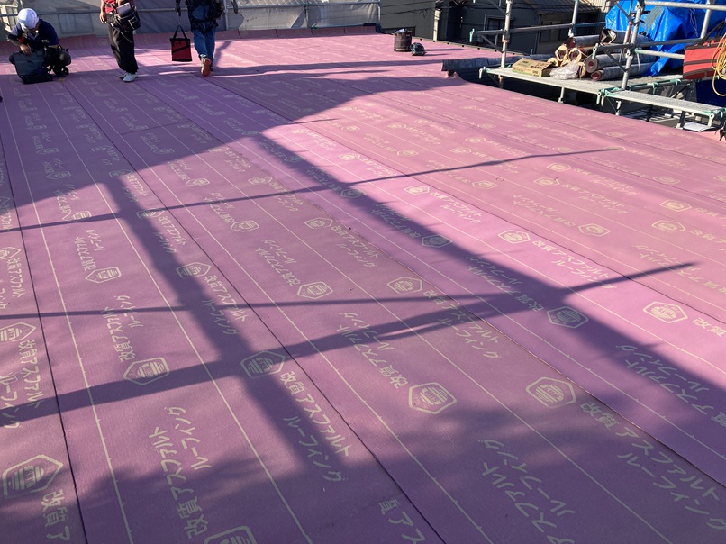 ルーフィングの施工後、屋根を敷設していきます。