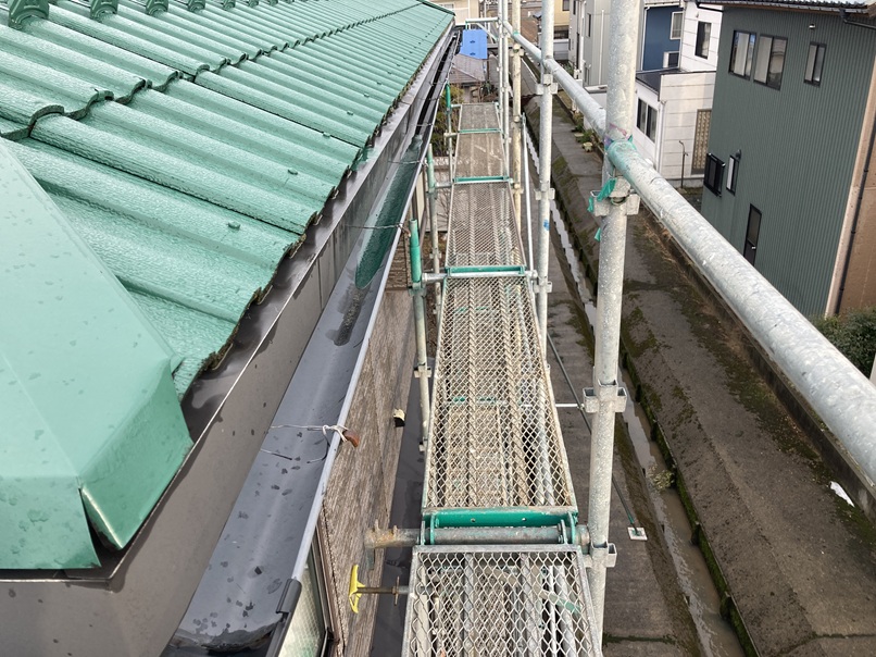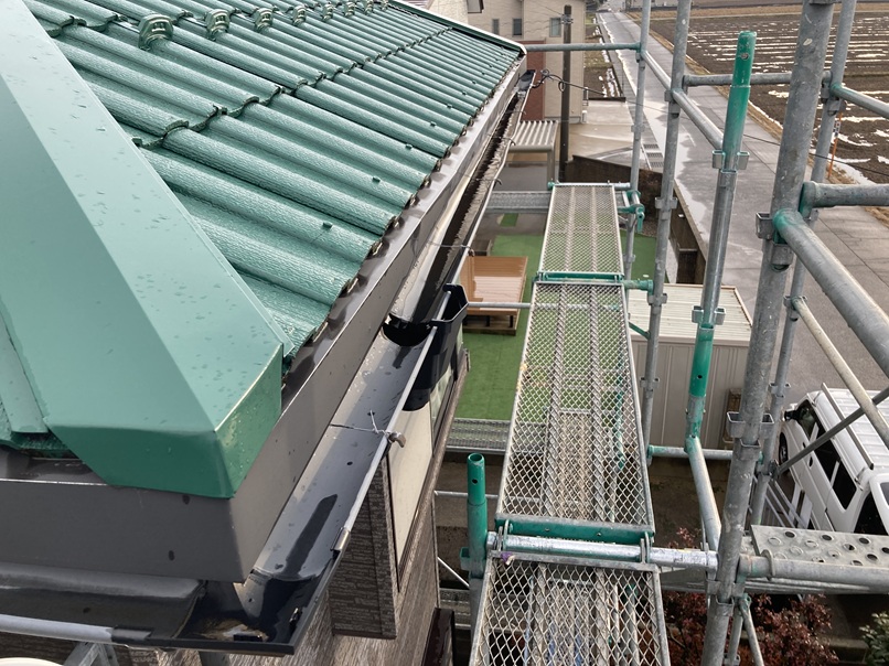 古い樋を外し、金具も新しいものを取り付けていきます。