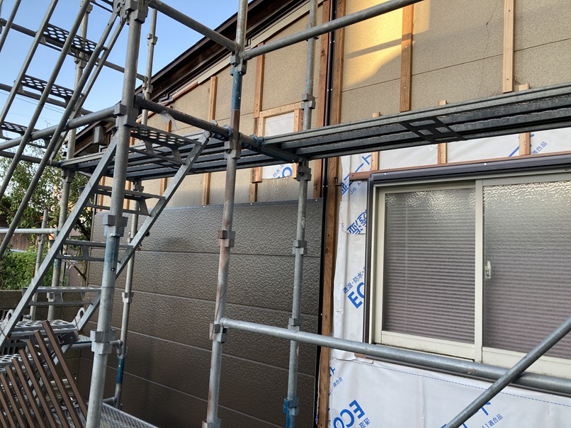 Danの金属サイディング モカブラウンに張り替えていきます。
