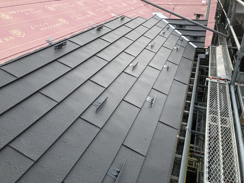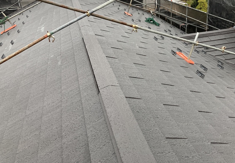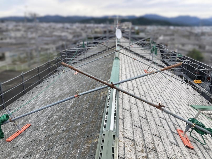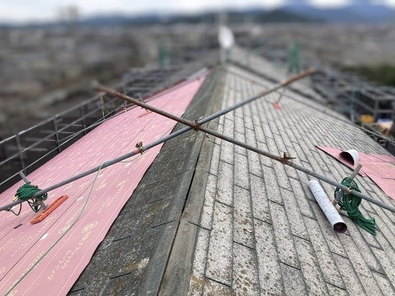 既存の棟包を撤去後、新しくルーフィングを敷設していきます。