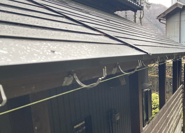 谷周辺の軒樋は、構造的に雪で壊れがちな部分です。
